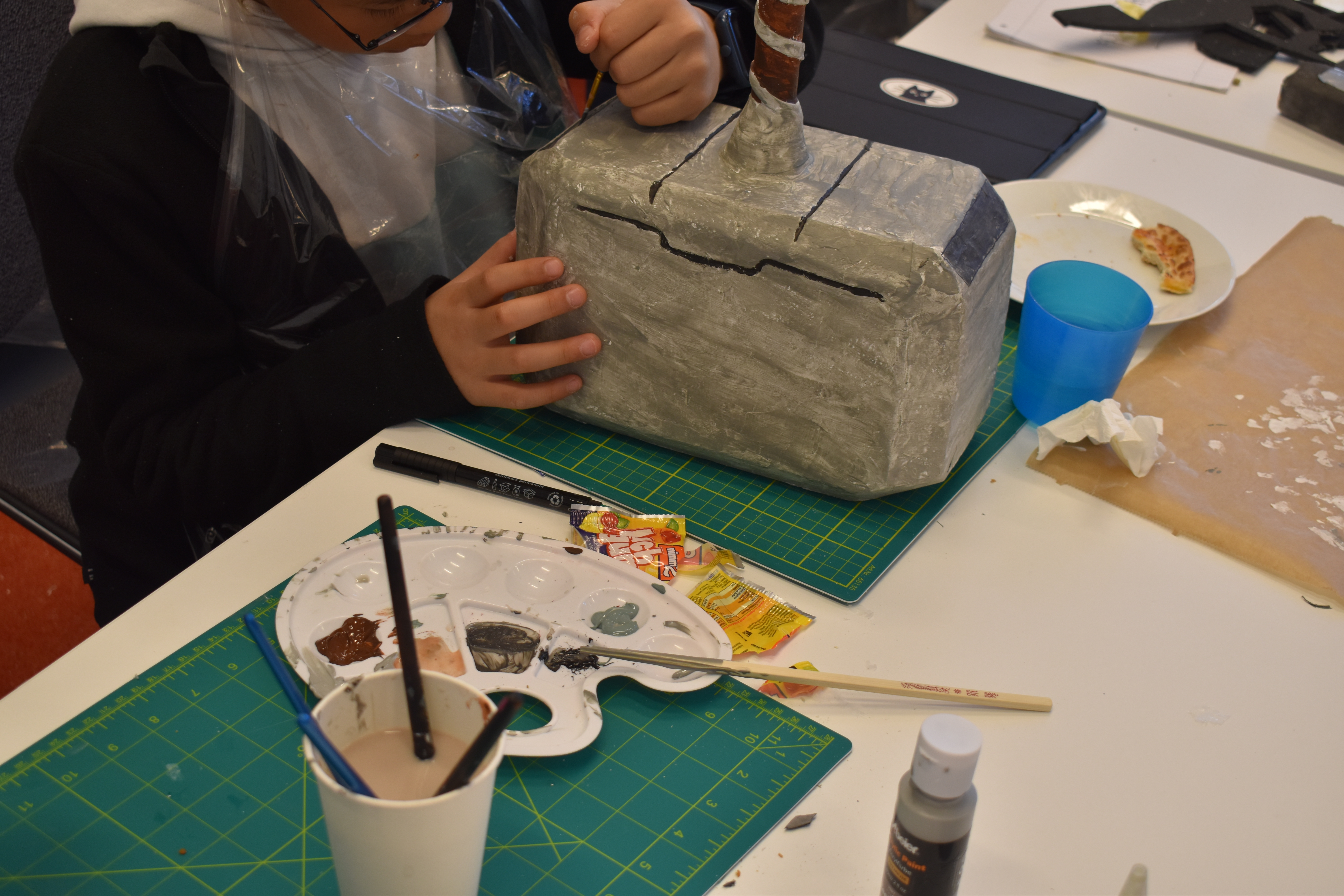 Gemalt, geklebt und designt wurde auch in den Winterferien wieder im Cosplay Crafting-Workshop. Hier bastelten die Teilnehmenden Videospiel- und Anime-Requisiten, egal ob Helme, Hüte, Hammer oder Äxte. Es sind tolle Accessoires entstanden, die nun darauf warten bei Veranstaltungen und Cosplay-Events präsentiert zu werden.